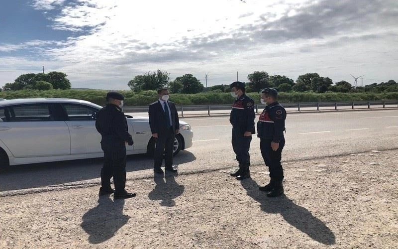 Çanakkale Valisi İlhami Aktaş, Ayvacık Jandarma Kontrol Noktası’nda koronavirüs tedbirleri kapsamında jandarma trafik ekipleri tarafından yapılan kontrol çalışmalarını denetledi.