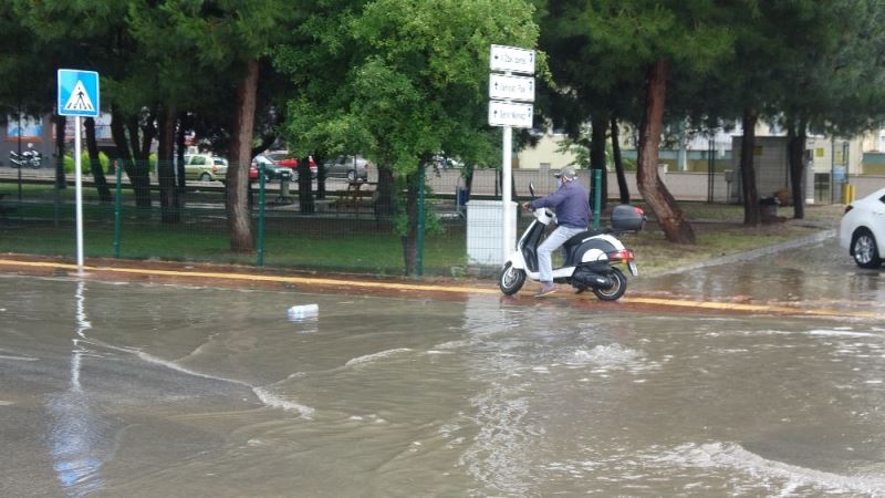 Çanakkale’de bugün sabah 10.00 sıralarında başlayan sağanak yağış kısa sürede etkili oldu. Barbaros Mahallesi Prof. Dr. Ümit Serdaroğlu Caddesi üzerinde bulunan rögarlar taştı. Araç sürücülerinin alternatif güzergah olarak kullandıkları bu bölgede zorlu anlar yaşandı. Yaklaşık yarım saat süren yağmurun ardından otomobil sürücüleri ve yayalar yağmura teslim oldu.
