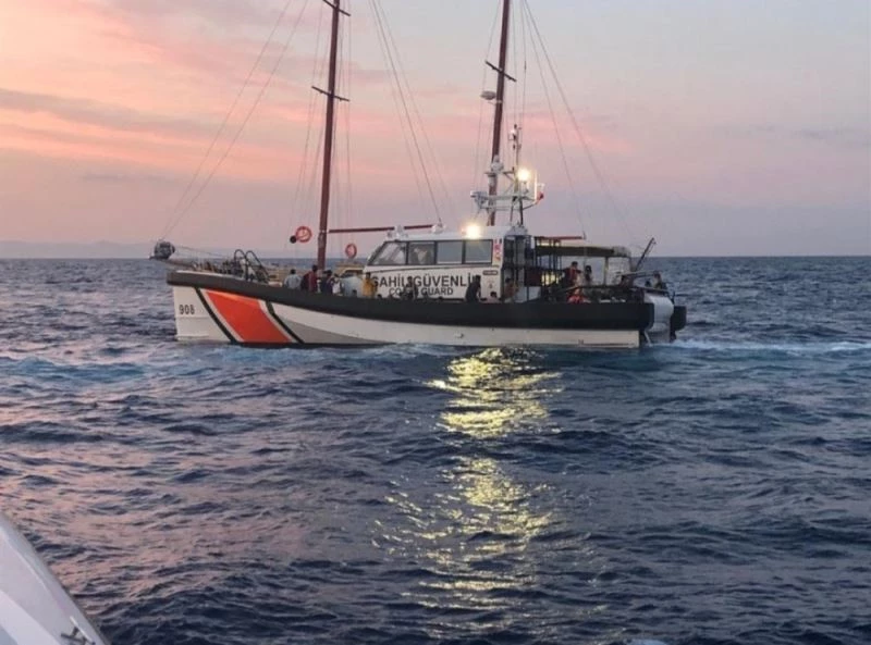 Kurtarılan 145 düzensiz göçmen Küçükkuyu’da bulunan Sahil Güvenlik Karakoluna getirildi.