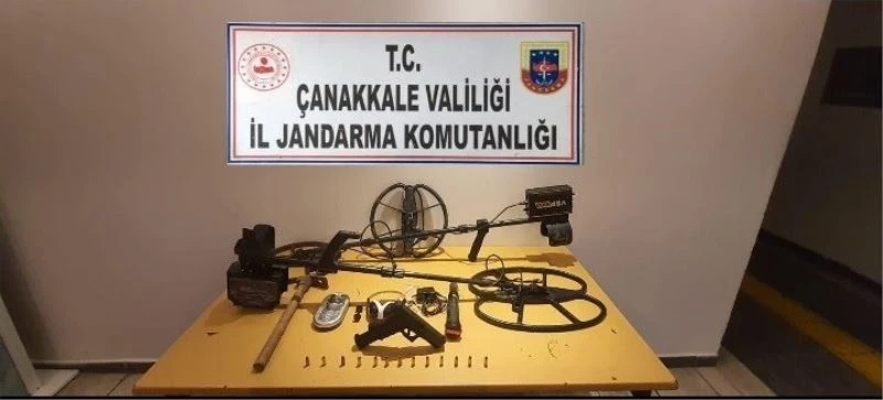 Çanakkale İl Jandarma Komutanlığı ekipleri, 23 Ocak Cumartesi günü saat 03.00 sıralarında Çanakkale Merkez Kızılkeçili köyü mevkii ormanlı alan içerisindeki park halinde bulunan bir araçtan şüphelenerek bölgeyi araştırmaya başladı. Araştırmalar neticesinde ellerinde dedektörle arama yaptığı tespit edilen C.K., U.F., B.A. ve Ş.E. isimli şahıslar, jandarma ekipleri tarafından gözaltına alındı.