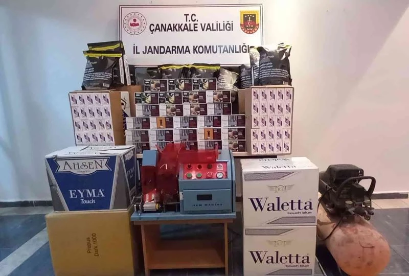 Çanakkale İl Jandarma Komutanlığı ekipleri, kaçakçılıkla mücadele çerçevesinde merkeze bağlı Kurşunlu köyünde düzenledikleri operasyonda, piyasa değeri 90 bin TL olan 29 kilogram kıyılmış tütün, 11 bin dolu makaron, 56 bin 500 boş makaron, otomatik sigara sarma makinesi ele geçirdi.