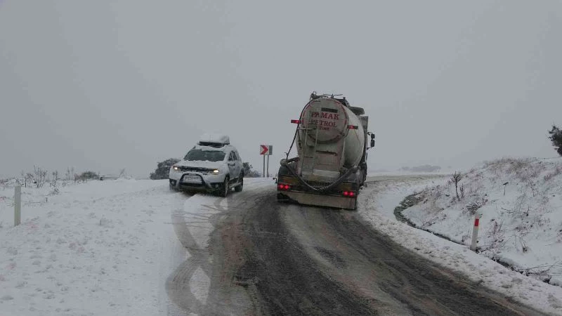 Çanakkale’de sabah 8.30 sıralarında başlayan kar yağışı etkili olmaya başladı. Lapseki ilçesinde bulunan Dumanlı Dağ mevkiinde bir petrol tankeri dik yokuştan çıkamadı. Bazı otomobil sürücüleri ise geri dönmek zorunda kaldı.