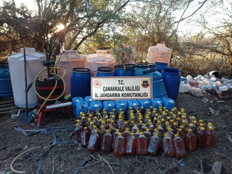 Eceabat’ta kaçak içki imal ve ticareti yapıldığı istihbaratını alan Çanakkale İl Jandarma Komutanlığı ekipleri, teknik ve fiziki takip sonucu H.Ç. isimli şahsın ev, araç ve iş yerinde arama gerçekleştirdi. Yapılan aramalarda satışa hazır halde plastik varil ve şişlere doldurulmuş bin 510 litre şarap ve 1 adet üzüm sıkma aleti ele geçirildi. Ayrıca kaçak içki imalinde izinsiz olarak çalıştırıldığı tespit edilen Pakistan uyruklu bir mülteci yakalandı. Ele geçirilen kaçak içkilere el konularak, şüpheli H.Ç. ile Pakistan uyruklu mülteci hakkında adlî ve idarî işlem başlatıldı.