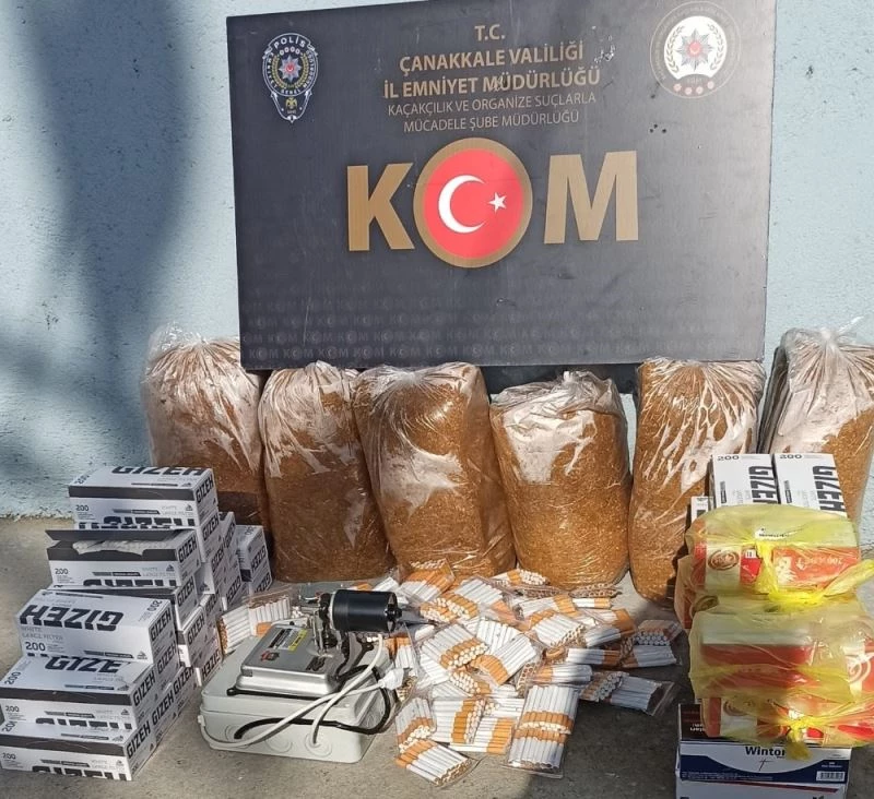 Çanakkale’nin Ayvacık İlçesinde F.G isimli şahsın işyeri, ikameti ve aracında yapılan arama sonucunda, 10.360 adet doldurulmuş sigara, 1 adet elektrikli sigara doldurma makinesi, 1000 adet bandrolsüz boş makaron ele geçirildi. Ayrıca ele geçirilen 45 kilogram kıyılmış tütün gerekli işlemler için Ayvacık İlçe Tarım ve Orman Müdürlüğü yetkililerine teslim edildi. Şüpheli F.G isimli şahsa 5607 SKM suçundan adli işlem yapılarak, savcılık talimatıyla serbest bırakıldı.