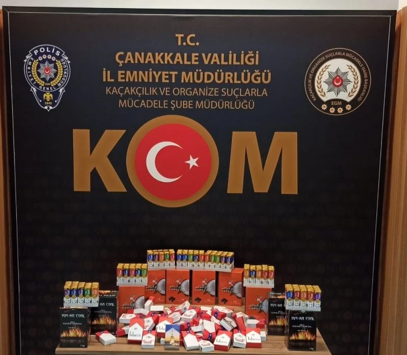 Çanakkale İl Emniyet Müdürlüğü Kaçakçılık ve Organize Suçlarla Mücadele (KOM) Şube Müdürlüğü ekipleri, bir iş yerinde yaptıkları aramada; 65 paket içerisinde bin 300 adet doldurma sigara, 1’ er kilogramlık 11 adet nargile kömürü, 162 adet gümrük kaçağı çakmak ve 45 paket gümrük kaçağı sigara sarma kâğıdı ele geçirdi.