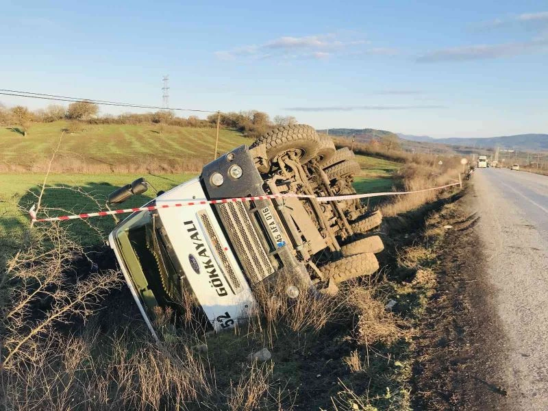 Çanakkale’nin Çan ilçesinde kömür yüklü kamyon, il karayolunun 10’uncu kilometresi olan Büyükpaşa köyü yol kavşağı yakınında şarampole devrildi.