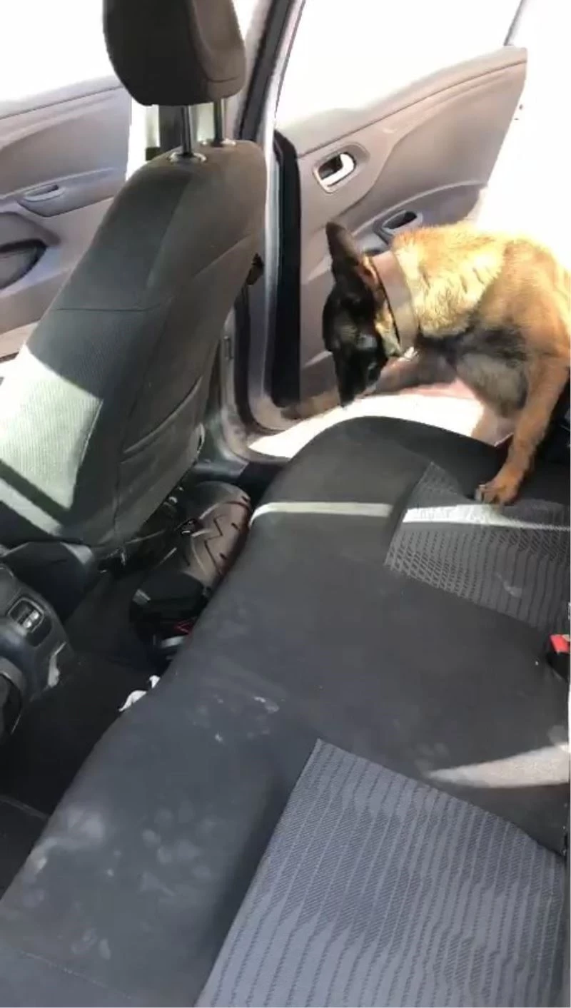 Hassas burunlu narkotik köpeği Lina’nın araç içerisinde yaptığı aramada ortaya çıkardığı uyuşturucu maddeleri ise saniye saniye kayıt altına alındı.