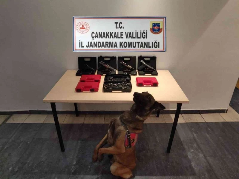 Çanakkale İl Jandarma Komutanlığı ekipleri silah kaçakçılığı ile mücadele doğrultusunda önceden takibe aldıkları bir adrese operasyon düzenlendi. Bomba arama köpeği Torba’nın da katıldığı operasyonda; 4 adet tabanca, 7 adet tabanca şarjörü, 9 adet 9mm tabanca fişeği, tabanca yapımında kullanılan namlu, pim ve yay gibi parçalar ele geçirildi.