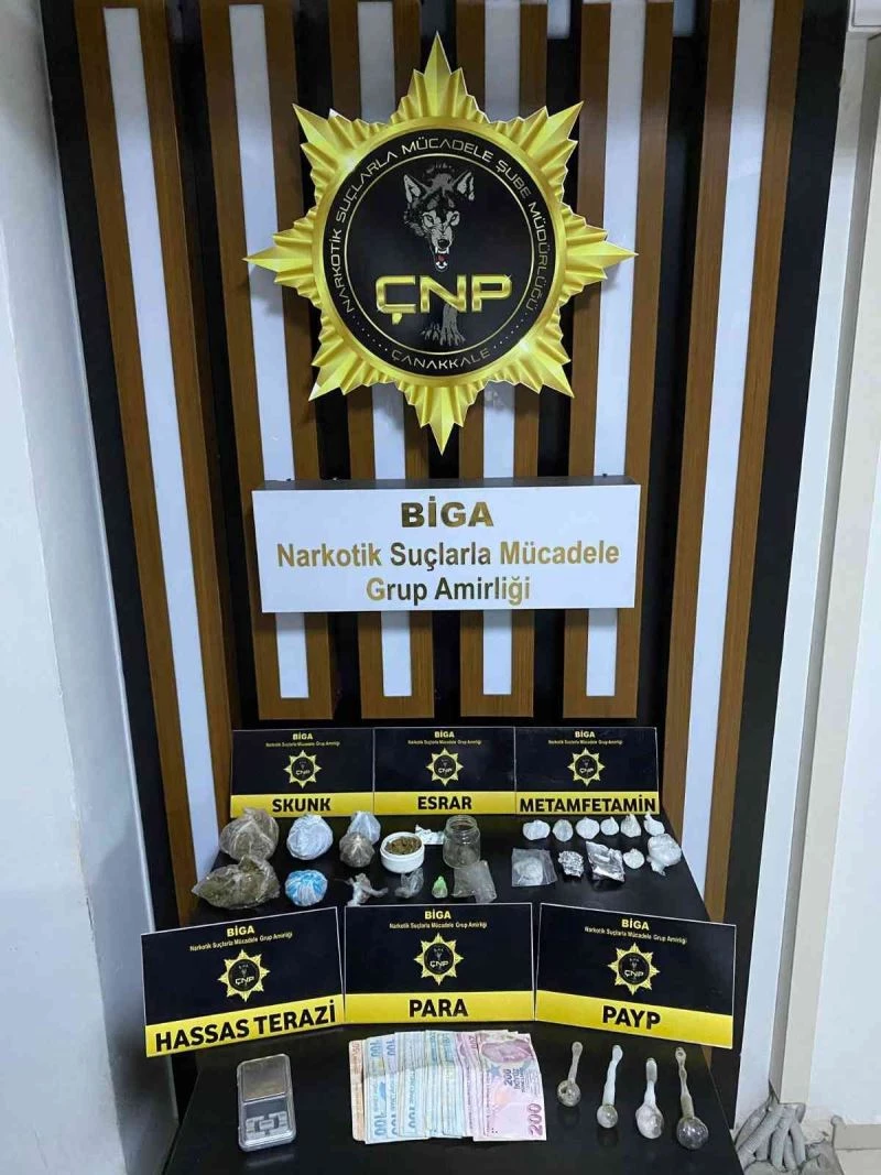 Çanakkale İl Emniyet Müdürlüğü Narkotik Suçlarla Mücadele Şube Müdürlüğü ekipleri tarafından, il merkezi ve ilçelerde uyuşturucu madde satışı yapan ve kullanan şahıslara yönelik 18 Temmuz ile 15 Ağustos tarihleri arasında gerçekleştirilen 61 olayda, 71 şüpheli gözaltına alındı. Gözaltına alınan şüphelilerden 3’ü çıkarıldıkları mahkemece tutuklandı. Ayrıca operasyonlar sırasında çeşitli suçlardan araması bulunan 17 şüpheli yakalandı. Gözaltına alınan şüphelilerden 13’ü tutuklanırken, 4 şüpheli serbest bırakıldı. Yapılan aramalar neticesinde şüphelilerden; 11 bin 710 gram esrar, 200 gram skunk, 162 gram metamfetamin, 48 gram bonzai, 32 adet sentetik ecza, 24 kök kenevir bitkisi, 2 adet tabanca, 47 adet mermi ve 4 bin 250 TL ele geçirildi.