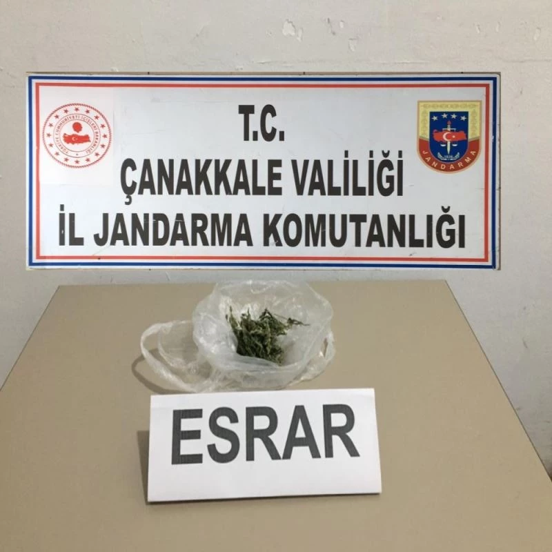 Bir ihbarı değerlendiren Çanakkale İl Jandarma Komutanlığı Kaçakçılık ve Organize Suçlarla Mücadele (KOM) Şube Müdürlüğü ile Merkez İlçe Jandarma Komutanlığı ekipleri, 17 plakalı bir aracı durdurdu. A.S. isimli şahsı aşağıya indirerek üzerini arayan ekipler, şeffaf poşet içerisinde 25 gram esrar maddesi ele geçirdi.