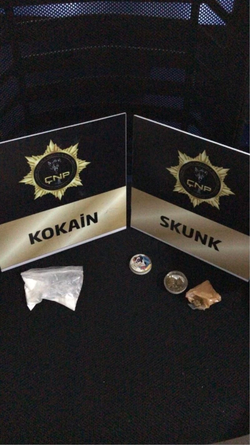 Şüpheli şahısların üzerinde yapılan aramalarda; 0,47 gr Sentetik Cannabinoid (Bonzai), 0,06 gr. Metamfetamin, 5 adet Sentetik Ecza (xanax), 6,35 gr Esrar, 14,22 gr Skunk ve 6,65 gr. Kokain maddesi ele geçirildi.