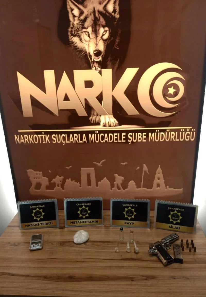 Lapseki İlçe Emniyet Müdürlüğü ve Narkotik Suçlarla Mücadele Şube Müdürlüğü ekipleri tarafından Lapseki Cumhuriyet Başsavcılığının koordinesinde gerçekleştirilen uyuşturucu operasyonunda, şüpheliler G.A. ve S.E. isimli şahıslara ilişkin adreslerde arama yapıldı. Yapılan aramalarda uyuşturucu madde tartımında kullanılan hassas terazi, 75.31 gram metamfetamin, uyuşturucu içiminde kullanılan aparat ve düzenekler, silah ve çok sayıda mermi ele geçirildi.