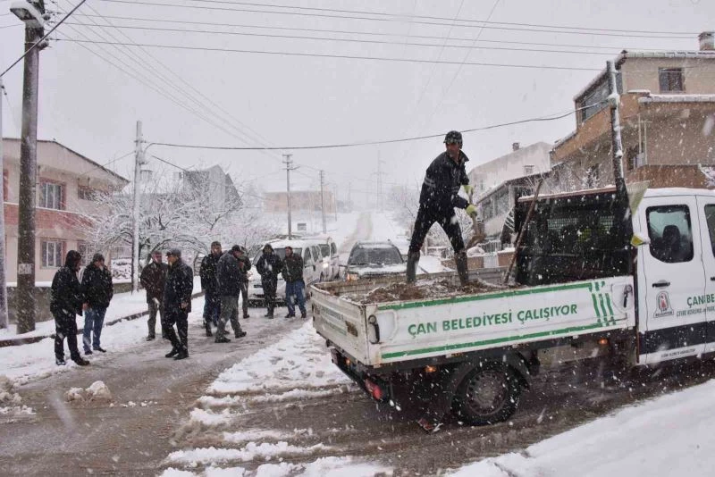 İlçe merkezindeki yeşil alanlar kar nedeniyle beyaza bürünürken, ilçenin hareketli olmayan mahalle aralarında da sürücüler zor anlar yaşadı. Çan Belediyesi ekipleri, sürücülerin güçlük yaşamaması için ana arterlerde buzlanmalara karşı tuzlama çalışmalarına başladı. Çan Belediye Başkanvekili Harun Aslan, belediye personeliyle birlikte sahaya çıkarak vatandaşların mağduriyet yaşamamaları için çalışmaları yoğun şekilde sürdürdü. Başkanvekili Aslan, Meteoroloji’nin günler öncesi yağış uyarını dikkate aldıkları bu süreçte Çan Belediyesi olarak kar yağışı öncesi hazırlıklarını tamamladıklarını belirtti. Aslan, "Çan Belediyesi ekipleri yağışın ardından saha çalışmalarına başlamıştır. Vatandaşlarımızın mağdur olmamaları için personelimiz aralıksız olarak saha çalışmalarına devam etmektedir. Bizler de çalışmaları yerinde takip ediyoruz” dedi.