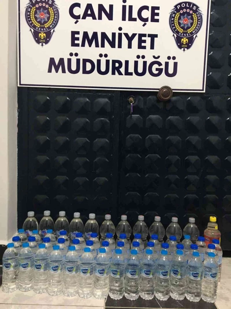 Edinilen bilgiye göre, gelen ihbarı değerlendiren Çan İlçe Emniyet Müdürlüğüne bağlı ekipler, yapılan arama sonucunda C. Ş.’ye ait 54 adet pet şişeye doldurulmuş 13 litre sahte votka ve 19,5 litre sahte rakı ele geçirdi. Gözaltına alınan C. Ş. Cumhuriyet Başsavcılığınca serbest bırakıldı.
