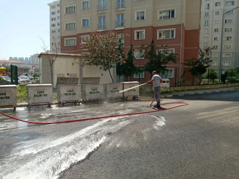 Samsun’da Canik Belediyesi’nin başlattığı "Sokağım Evim Kadar Temiz" projesi kapsamında ilçe sokaklarında genel temizlik çalışması yapılıyor.
