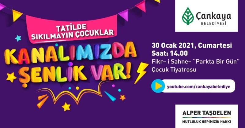 Çankaya Belediyesi’nin çocuklar için sanal olarak düzenlediği ’Tatilde Şenlik Var’ etkinliği 14 Şubat’a kadar sürecek. Tiyatro gösterileri ve oyun atölyeleri belediyenin YouTube kanalından çocuklarla buluşacak. Çocuk oyunları, mini konser, illüstrasyon, pandomim, kukla ve karikatür atölyeleri ile çocuk yogası gibi etkinliklerden oluşan programı öğrenciler ekranlardan rahatlıkla takip edebilecek.