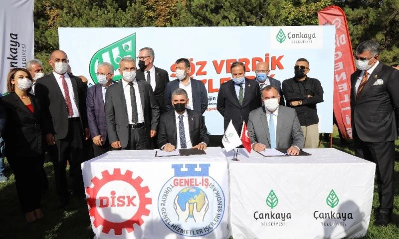 Çankaya Belediyesi ile DİSK’e bağlı Genel İş 1 nolu şube arasında toplu iş sözleşmesi imzalandı. Belediye Başkanı Alper Taşdelen, “Türkiye’de şu ana kadar imzalanan en yüksek toplu iş sözleşmelerinden biridir. Böylesine bir ekonomik krizde işçisine sahip çıkarak bu tarzda bir toplu iş sözleşmesi imzalamak sosyal belediyeciliğin gereği ve sonucudur” dedi.