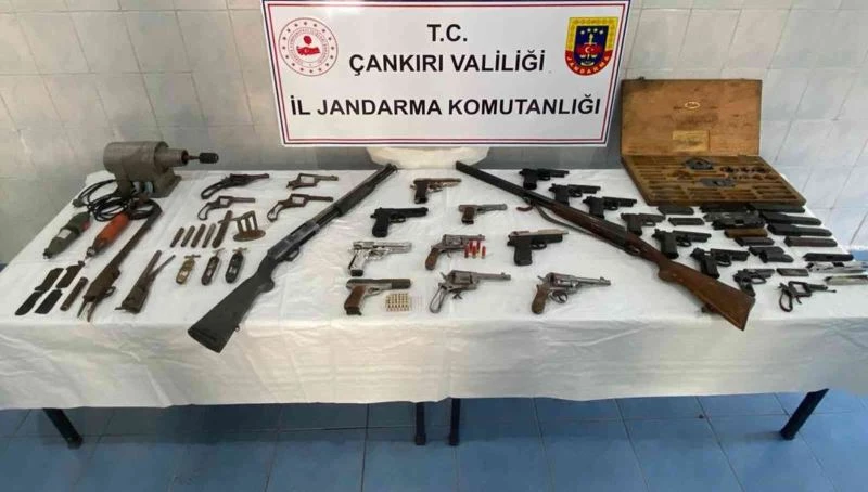 Edinilen bilgiye göre, Çankırı İl Jandarma Komutanlığı ekipleri tarafından yapılan çalışmalar neticesinde, Çerkeş ilçesi yaşayan bir şahsın silah kaçakçılığı yaptığı bilgisine ulaşıldı. Harekete geçen ekipler tarafından şahsın evinde arama yapıldı. Aramalarda 5 adet kullanıma hazır ruhsatsız tabanca, 2 adet ruhsatsız av tüfeği, 15 adet birleştirilmeye hazır tabanca iskeleti, 3 adet tabanca fişeği ve çeşitli boy ve ebatlarda silah imalatı yapımında kullanılan makine ve malzemeler ele geçirildi.