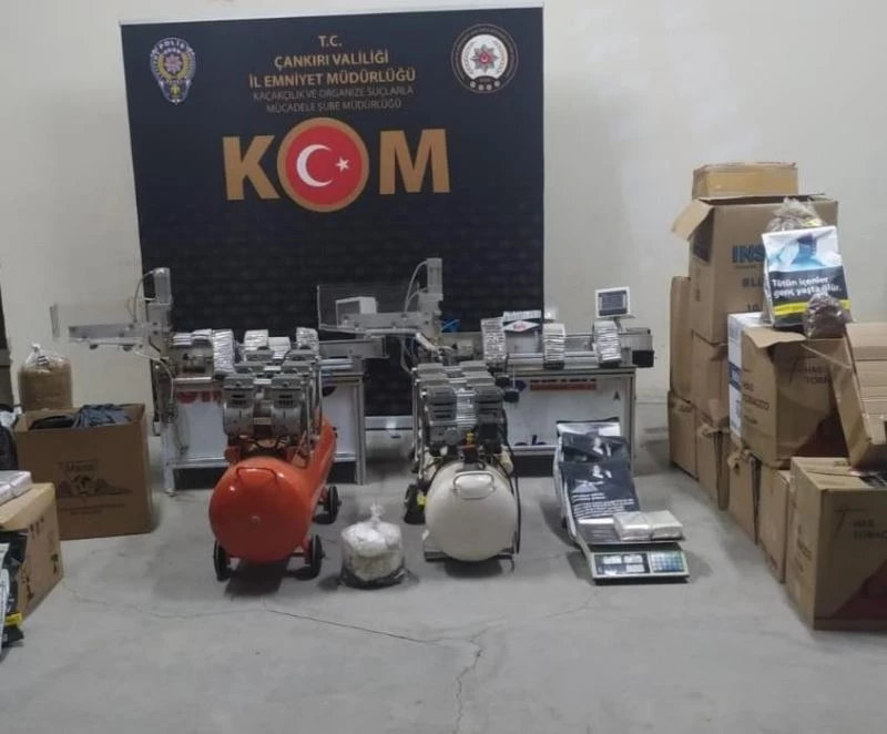 Operasyonda; 143 kilogram kıyılmış açık tütün, 42 klio 218 gram nargile tütünü, 1’er kilogramlık 5 paket bandrolsüz tütün, 2 bin 600 dal içi kıyılmış tütünle doldurulmuş makaron, 12 bin adet kilitli şeffaf poşet, bin 370 adet mükerrer bandrol, 27 paket yaprak sigara kağıdı, 2 adet dijital terazi, 2 adet kompresör, 2 adet komprasörlerin ürettiği hava basıncı ile çalışan piyasa değeri yaklaşık 20 bin lira olan makaron doldurma makinası ele geçirildi.