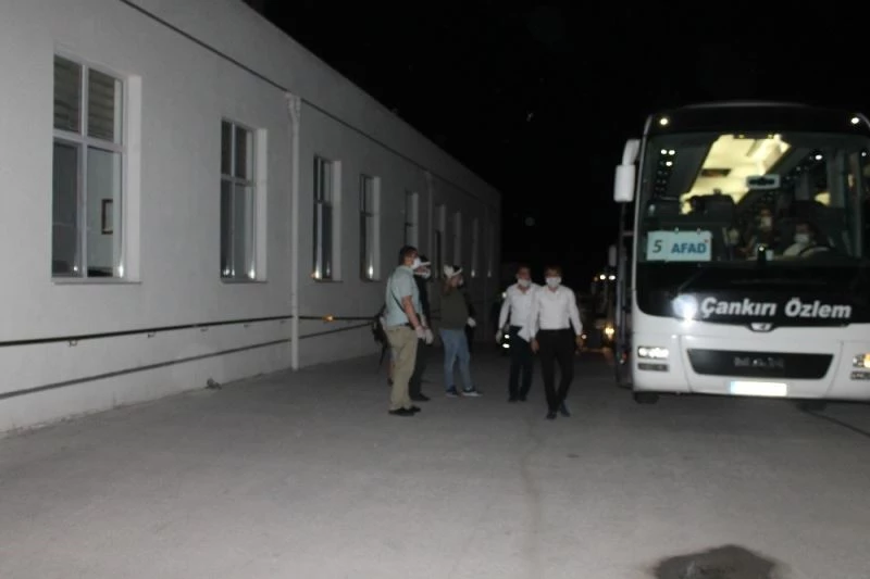 Çankırı’da karantina süreci sona eren vatandaşlar yurttan tahliye edilerek memleketlerine uğurlandı.
