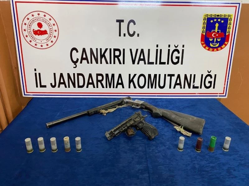 Çankırı İl Jandarma Komutanlığı ekiplerince düzenlenen operasyonda ruhsatsız tüfek ve tabanca ele geçirildi.