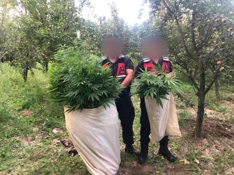 Çankırı İl Jandarma Komutanlığı ekipleri tarafından düzenlenen operasyonda 100 kök kenevir ele geçirildi.