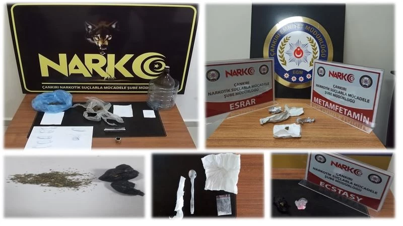 Edinilen bilgiye göre, Çerkeş Cumhuriyet Başsavcılığı koordinesinde Çankırı Emniyet Müdürlüğü Narkotik Suçlarla Mücadele Şube Müdürlüğü tarafından uyuşturucu madde imal ve ticareti yapan şahıslara yönelik 28 Şubat-3 Mart tarihleri arasında Çankırı’nın Çerkeş, Kurşunlu, Orta ilçeleri ile İstanbul ve Kocaeli’de 8 sekiz şüpheli şahsa yönelik belirlenen 9 adrese eş zamanlı operasyon düzenlendi. Gerçekleştirilen operasyonda farklı miktarlarda esrar, metamfetamin, sentetik kannobinoid, ecstasy, uyuşturucu kullanma aparatları ve dijital materyaller ele geçirildi.