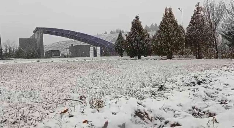 Çankırı’da etkili olan kar yağışı ile kentin yüksek kesimleri beyaza büründü.