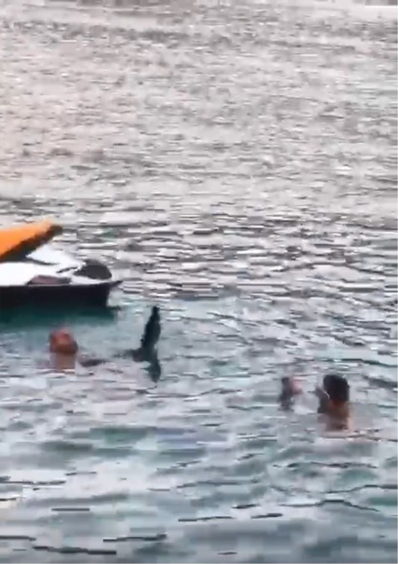 Görüntüyü çeken vatandaşların , “Çok yazık” dediği, tekne içinde bulunan vatandaşların da o anları kayda aldığı gözlendi.