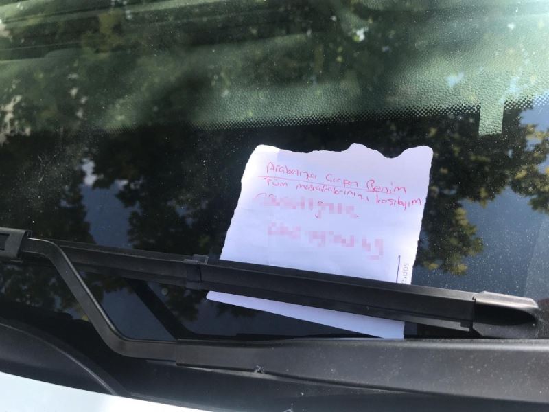 Öte yandan, polis ekipleri havanın azda olsa yağışlı olması nedeniyle kadın sürücünün otomobilin camına bıraktığı notu alarak ıslanmasın diye şeffaf bir poşete koyup tekrar otomobilin camı ve silecek arasına sıkıştırdı.