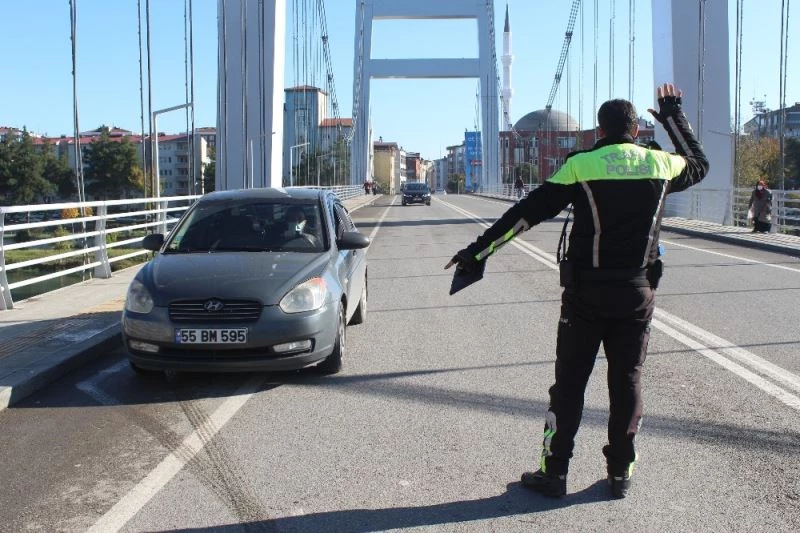 Çarşamba ilçesinde İlçe Emniyet Müdürlüğü trafik ekiplerince Yeni Şehir Köprüsü üzerinde araç sürücüleri denetlendi. Ekipler ehliyet, ruhsat, sigorta ve kural ihlalleri konularında kontrol yaparak evrakları tam olmayanlara ceza kesti.