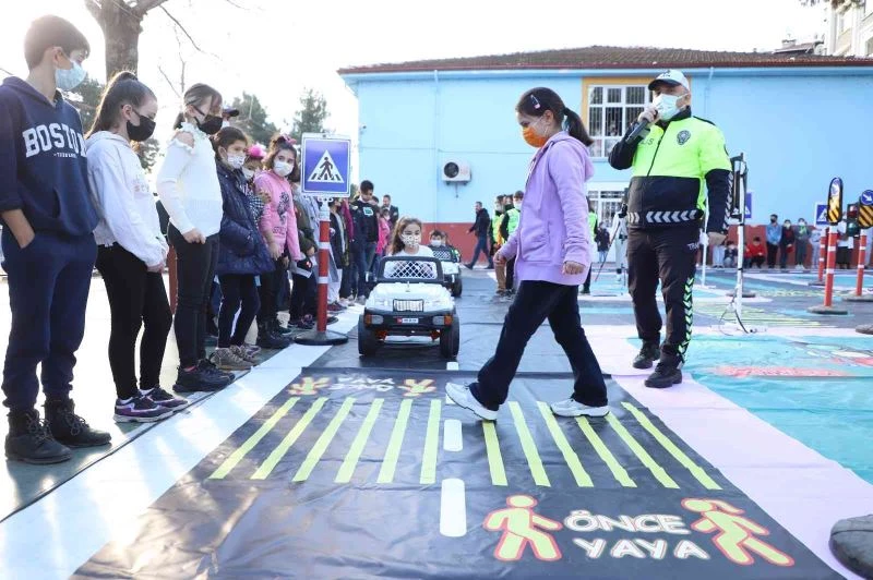 Samsun’un Çarşamba ilçesinde, çocukların trafik kurallarını eğlenerek öğrenmelerini sağlamak ve bilinçli nesiller yetiştirmek amacıyla Çarşamba Belediyesi tarafından ‘Gezici Trafik Eğitimi Parkuru’ ile Atatürk İlkokulunda öğrencilere trafik eğitimi verildi.