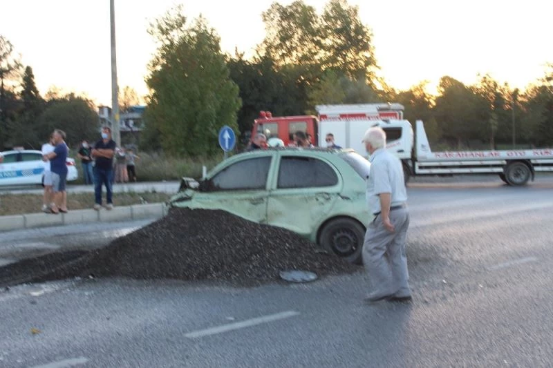 Yaralı araç sürücüsü sağlık ekiplerince olay yerinde yapılan ilk müdahalelerin ardından Çarşamba Devlet Hastanesine kaldırılırken, traktörün römorkunda bulunan çakıl ve su gider boruları yola savruldu.