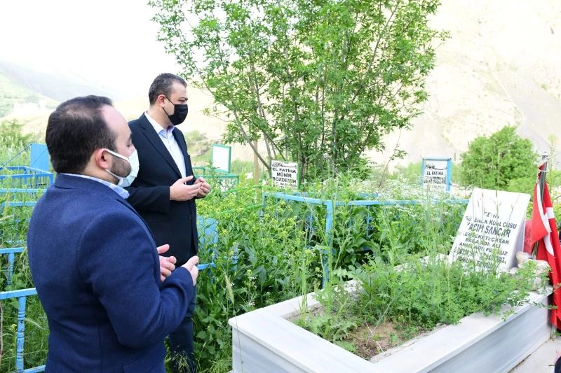 Çatak Kaymakamı Mehmet Erdem Akbulut Bayram namazı sonrası beraberinde İlçe Müftüsü Abdullah Uzel, Yazı İşleri Müdürü Murat Okan ve şehit aileleri ile birlikte şehitliği ziyaret ettiler. Korona virüs tedbirleri kapsamında gerçekleştirilen şehitlikteki ziyarette İlçe Müftülüğü din görevlileri tarafından Yasin-i Şerif okunarak ilçe protokolü tarafından kabristan başında dua edildi. okunan duaların ardın protokol şehitlikten ayrıldı.