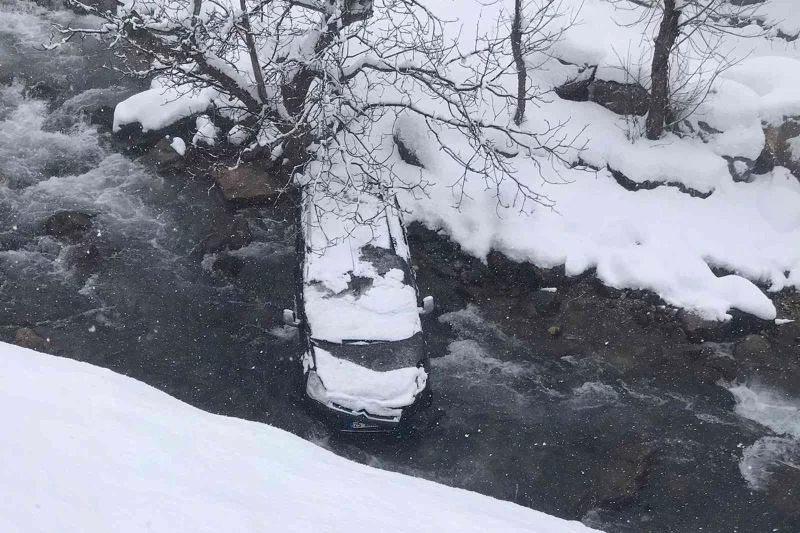 Çatak’ta karlı yolda kayan kamyonet dereye uçtu: 2 yaralı