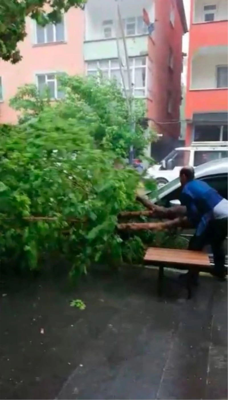 Van’ın Çatak ilçesinde öğle saatlerinde aniden başlayan fırtına ve sağanak yağış nedeniyle ağaç devrildi.