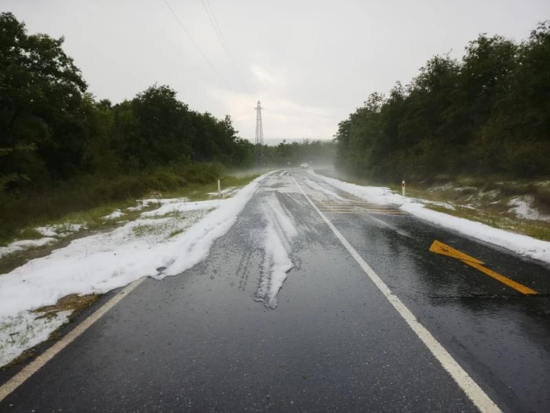 Çatalca’da dolu yağışı sürücülere zor anlar yaşattı