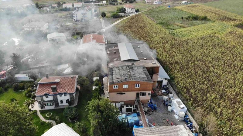 Öte yandan, büyük bir bölümü yanan fabrika dron ile havadan görüntülendi.