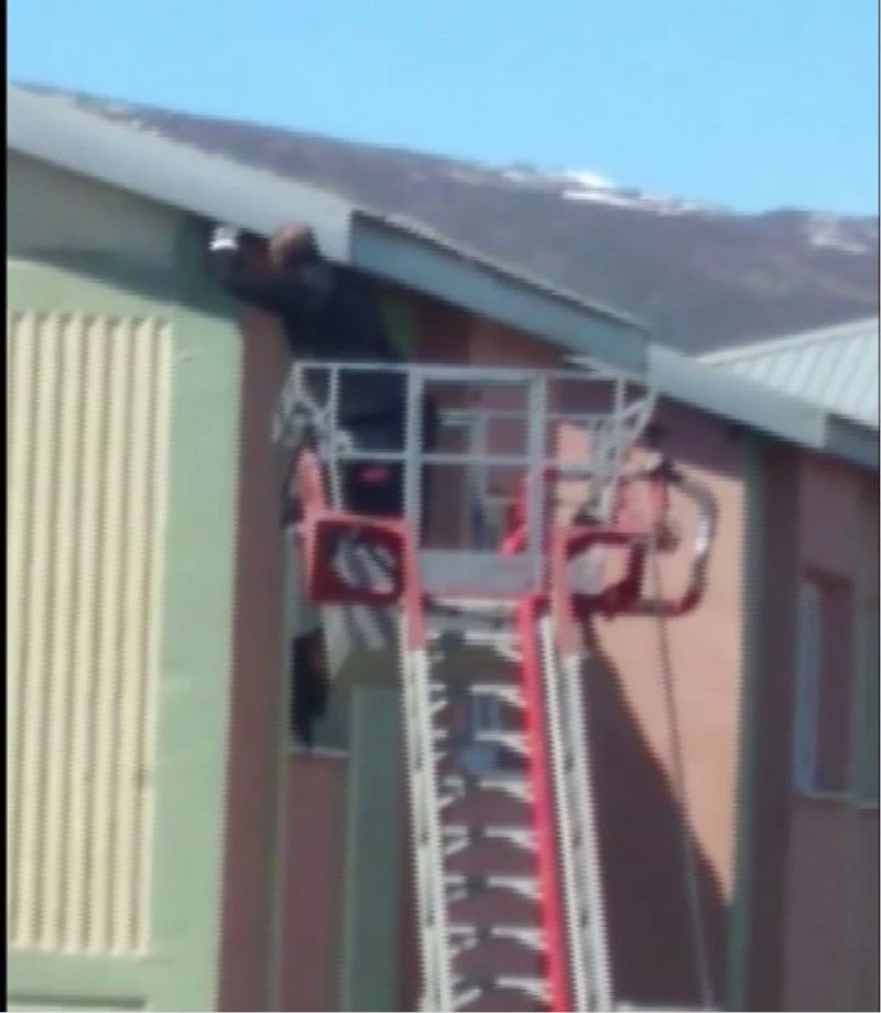 Bingöl merkezde bir binanın çatı saçağında ayağı ipe dolanan kargayı itfaiye ekipleri kurtardı.