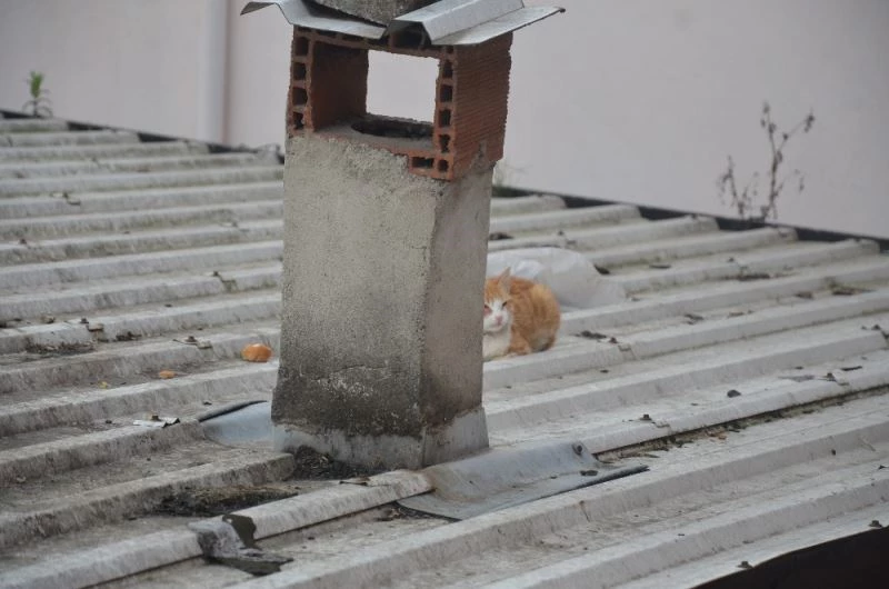 Ünye’nin Çınarlık Mahallesi Çıldır Sokak’ta bulunan tek katlı bir evin çatısında saatlerdir mahsur kalan kedinin sesini duyan bir vatandaş durumu Ordu Büyükşehir Belediyesi Ünye İtfaiye Amirliği ekiplerine haber verdi. Kedi, itfaiye aracından uzatılan merdivenle itfaiye erinin çabası sonucu kurtarıldı.
