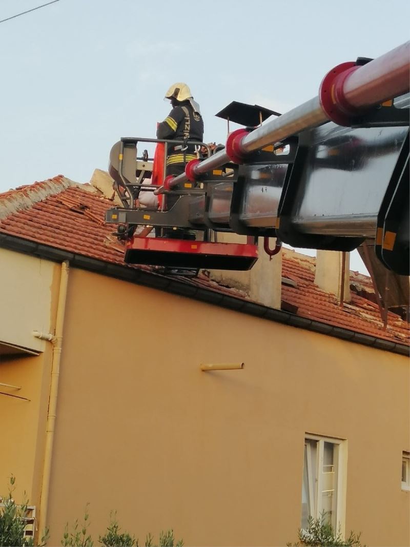 Denizli’nin Merkezefendi ilçesinde evinin çatısını tamir eden adam fenalaşınca yardımına itfaiye ve sağlık ekipleri yetişti.