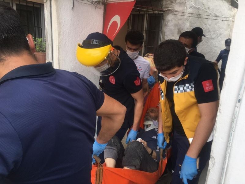 Çatıdan düşen dede torunlarının da yaralanmasına sebep oldu