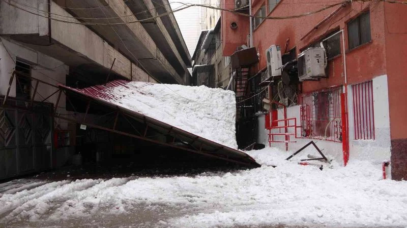 Kahramanmaraş’ta bir otelin çatısında biriken kar kütleleri, yan taraftaki başka bir çatının üzerine düşerek çökmesine neden oldu.