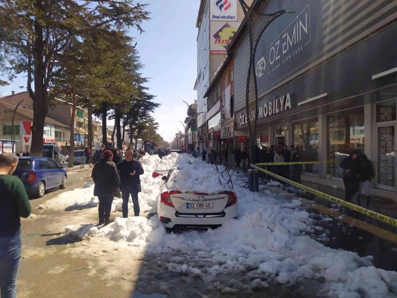 Öğlen saatlerinde ilçenin Cumhuriyet Caddesi üzerinde bulunan 3 katlı bir iş yerinin çatışından büyük bir gürültüyle kar kütlesi düştü. Düşen kar kütlesi, iş yerinin önünde park halinde bulunan 4 aracı kullanılamaz hale getirirken, meydana gelen olayda şans eseri can kaybı ve yaralanan olmadı.