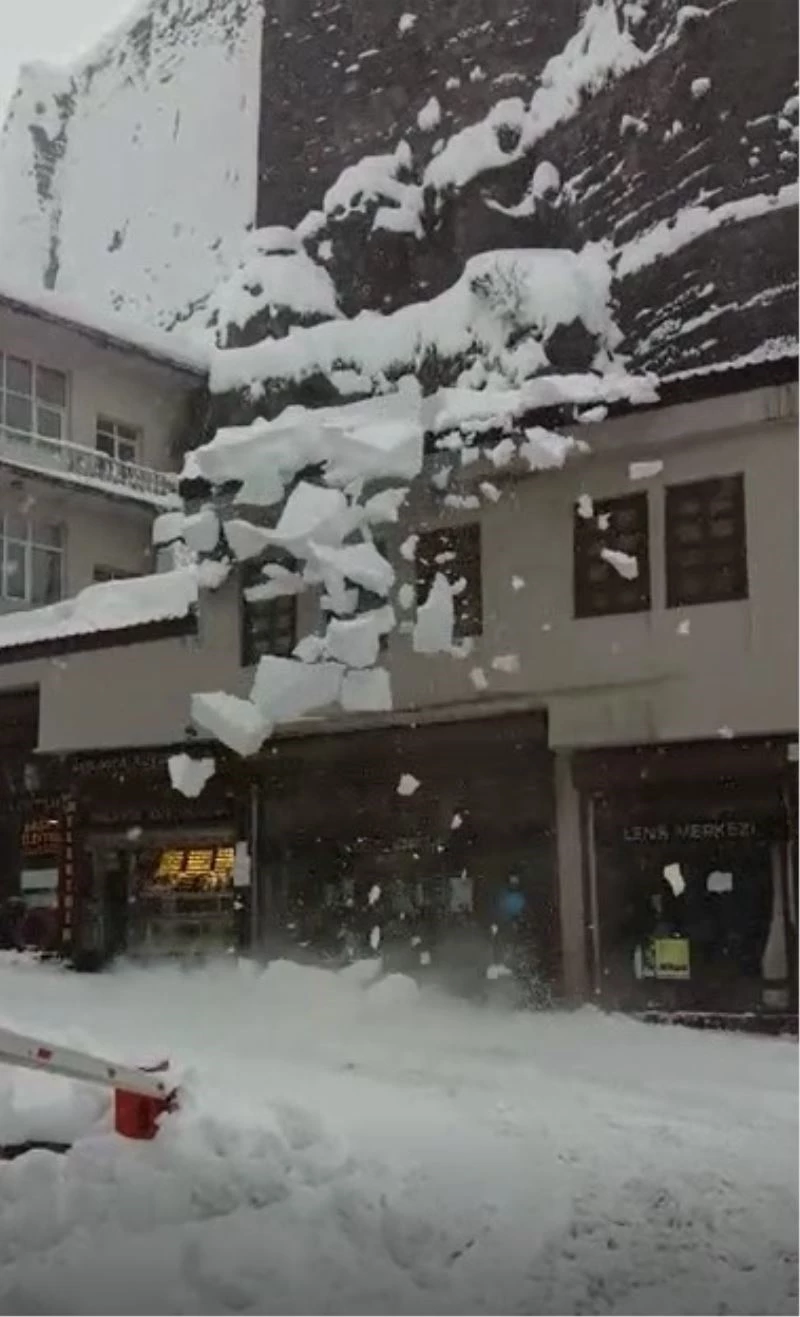 Bitlis’te günlerdir yağan kar hayatı olumsuz yönde etkilerken, çatılarda biriken kar kütleleri ise tehlike arz ediyor. Bitlis çarşı merkezindeki tek katlı bir iş yerinin çatısındaki tonlarca ağırlıktaki kar kütlesi, bir anda büyük bir gürültüyle düştü. Kar düştüğü esnada yoldan geçen kimsenin olmaması olası bir faciayı engellerken, yaşananlar ise bir vatandaş tarafından cep telefonuyla görüntülendi.