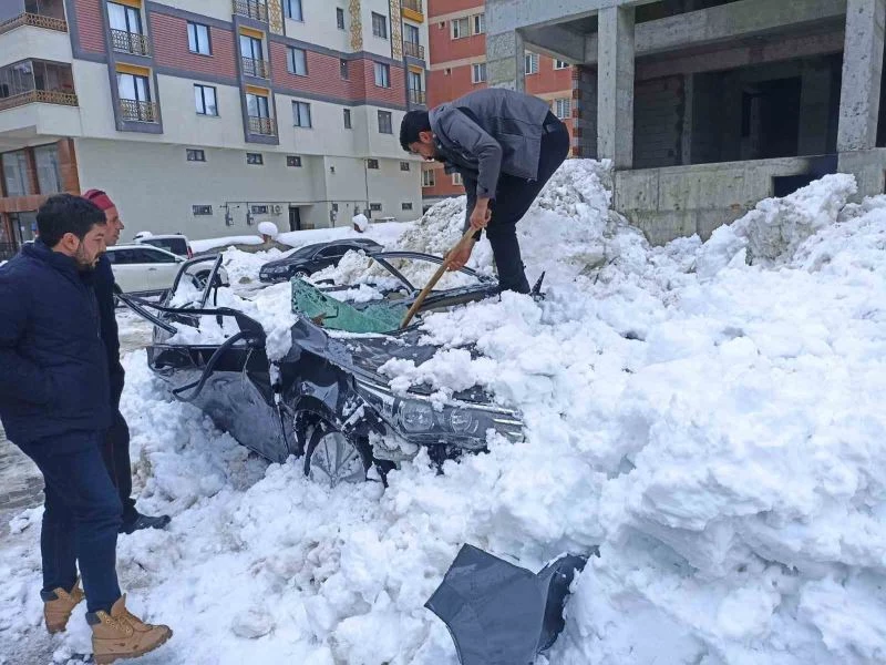 BİTLİS – Bitlis’in Tatvan ilçesinde çatıdan düşen tonlarca ağırlığındaki kar kütlesi, bir aracı kullanılamaz hale getirdi.