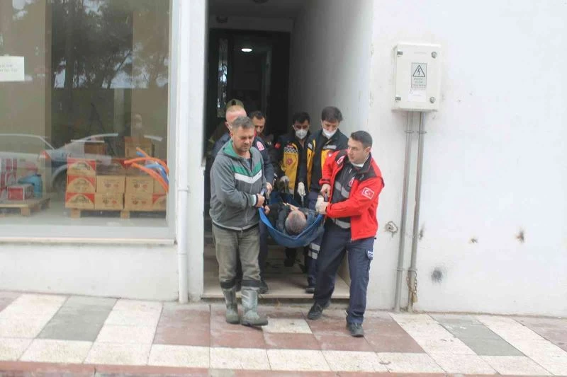 Manyas ilçesinde fırtınadan zarar gören çatıyı onarmak isteyen usta dengesini kaybederek merdiven boşluğuna düştü.
