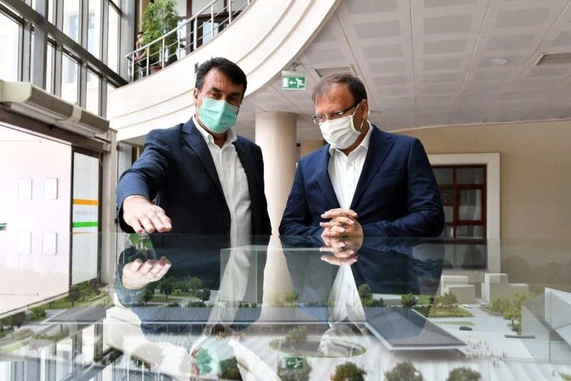 AK Parti Bursa Milletvekili ve TBMM İnsan Hakları İnceleme Komisyonu Başkanı Hakan Çavuşoğlu, Osmangazi Belediye Başkanı Mustafa Dündar’ı makamında ziyaret etti. İlk olarak belediye binası girişinde yer alan Osmangazi Meydanı maketini inceleyen Çavuşoğlu ile Dündar, daha sonra baret ve yeleklerini giyerek şantiye alanını gezdi. Santral Garaj bölgesinde 40 dönüm alan üzerine inşa edilen meydan hakkında Çavuşoğlu’na bilgiler veren Başkan Dündar, “Belediye olarak, bir yandan koronavirüs ile mücadele ederken, diğer yandan yatırımlarımıza hız kesmeden devam ediyoruz. Bursa’nın merkezinde 2 bin araç kapasiteli 4 katlı kapalı otoparkı olan bir meydan inşa ediyoruz. Bugüne kadar 530 fore kazık çakıldı. Ankara Yolu üzerinden de 18 metre yerin altına indik. Burada ciddi bir çalışma var. En yakın zamanda betonarme çalışmalarına başlayacağız” dedi.