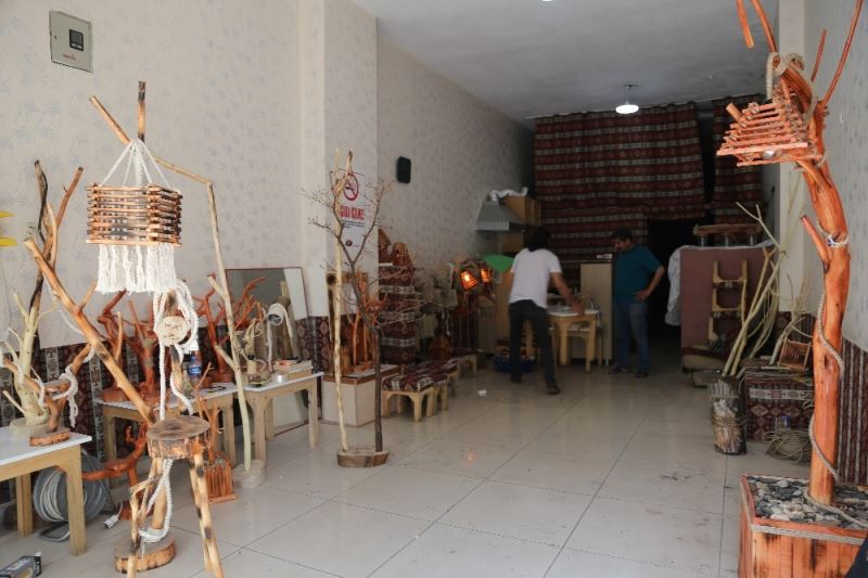 Elazığ’da korona virüs salgını nedeniyle kapatmak zorunda kaldıkları çay ocağını atölyeye çeviren iki arkadaş, topladıkları odun parçalarından çeşitli ürünler yaparak ekonomik kazanç elde etmeye başladı.