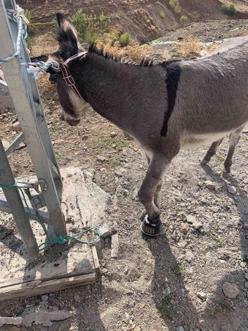 Bingöl’ün Solhan ilçesinde ayağı çaydanlığa sıkışan eşeği itfaiye ve veteriner ekipleri kurtardı.